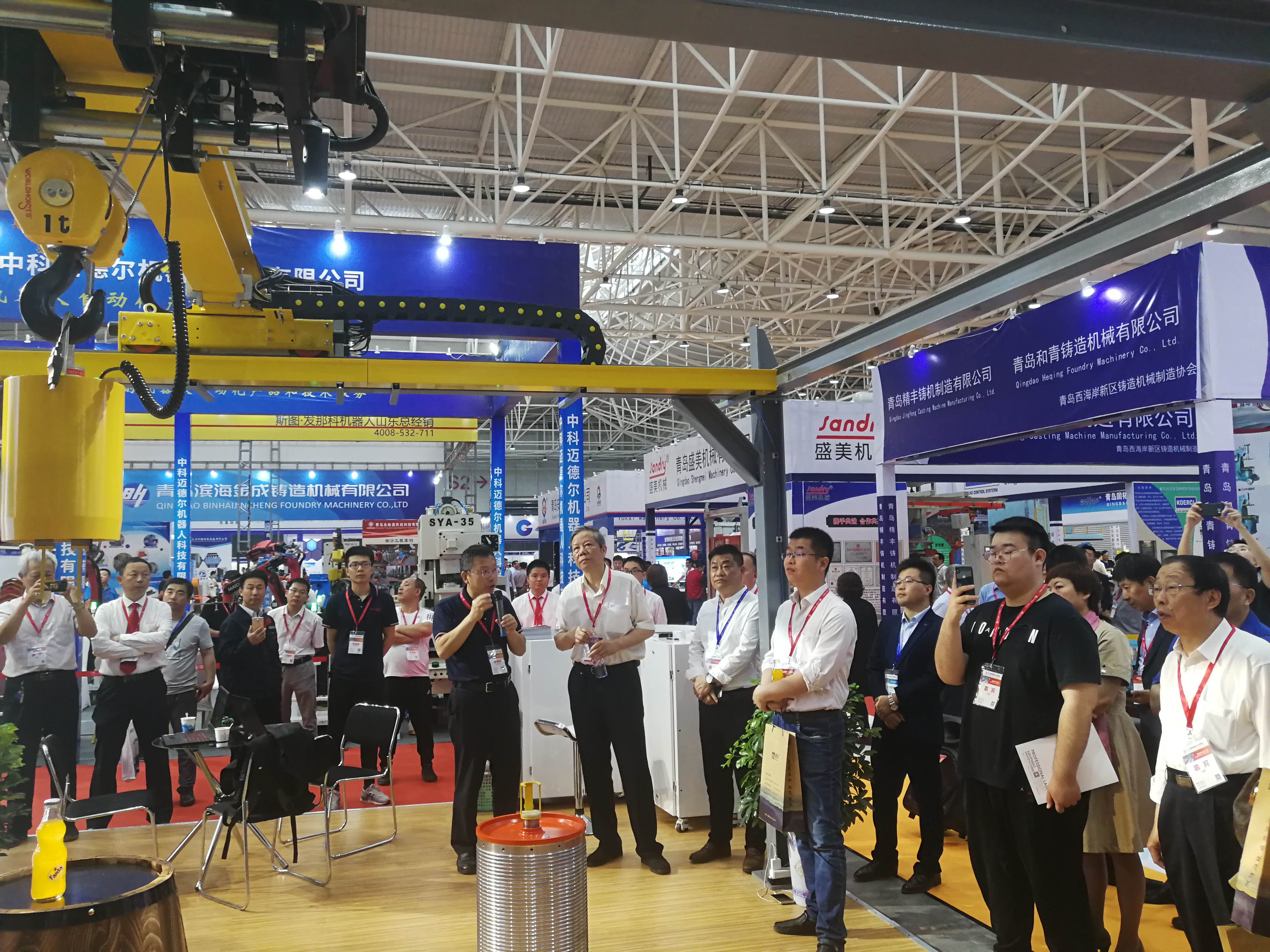 2019国际工业博览会于5月23日盛大开幕,作为本届展会的主打产品,玖鼎官网基于机器视觉精准定位系统的全自动智能起重机备受观众青睐,其黑科技——“智能开汽水”荣登山东卫视新闻联播。