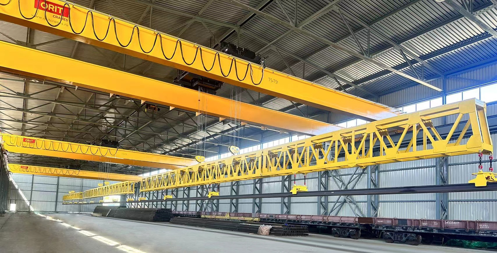 玖鼎官网长轨自动吊,三车联动定位精度高,一次性起吊多根几百米长的超长轨道,实现所有钢轨同步抓取、同步卸货,作业效率高、用工成本低。