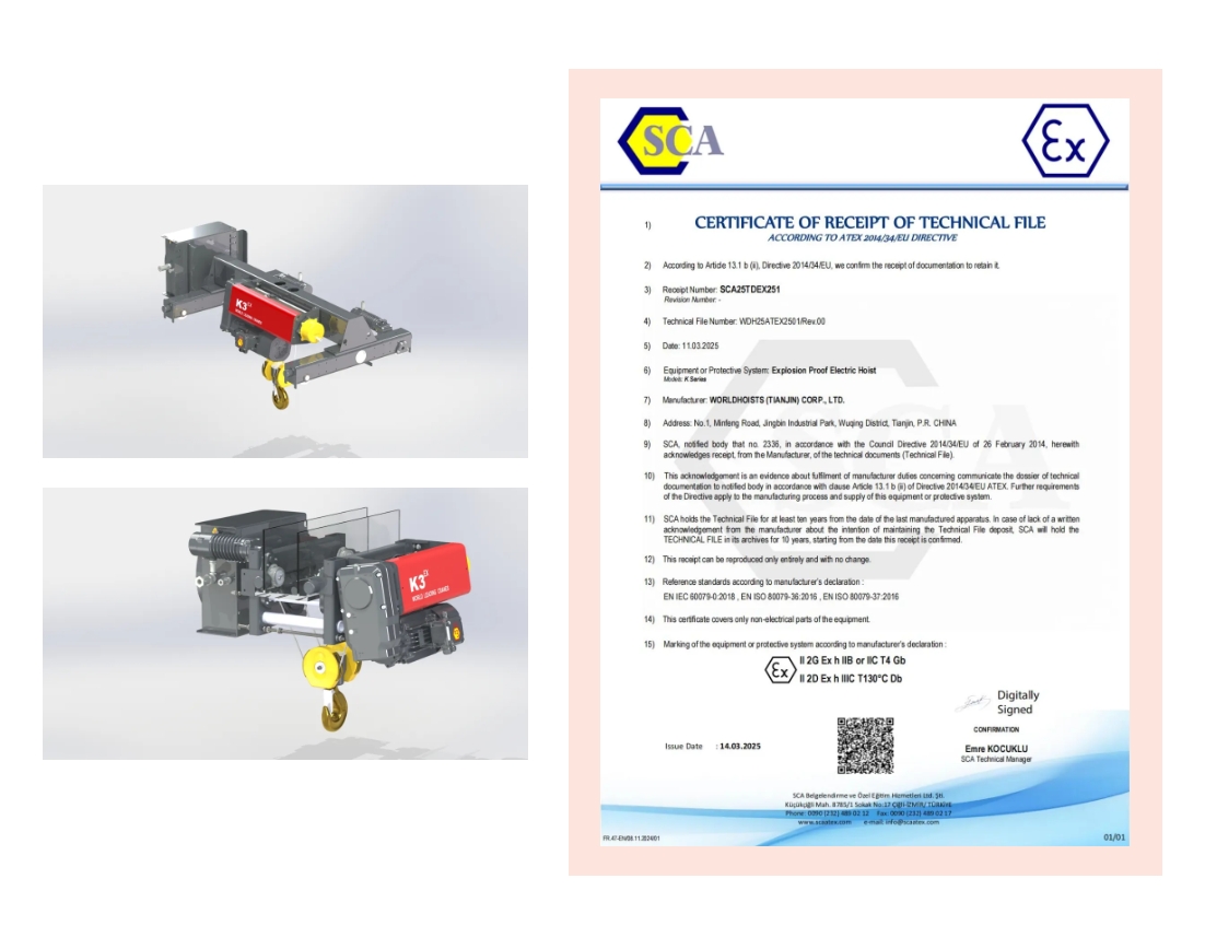 重磅好消息!玖鼎官网起重机(华德)荣获ATEX防爆认证,开启欧洲市场新纪元!