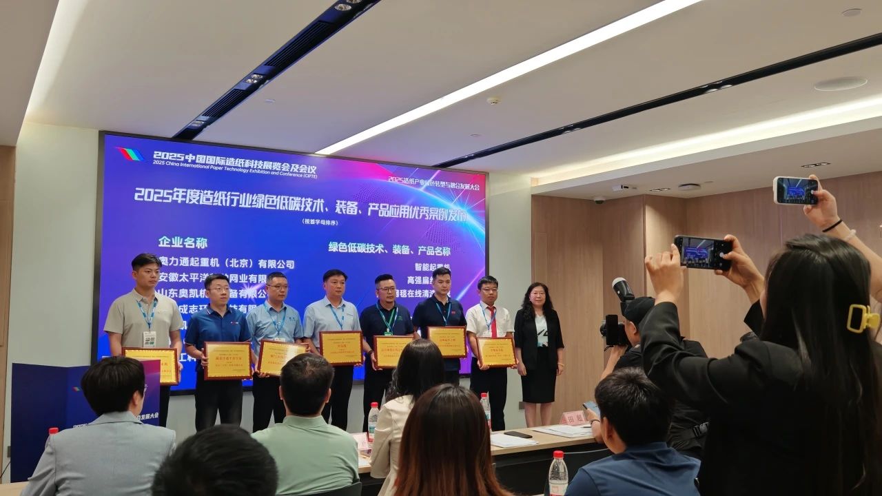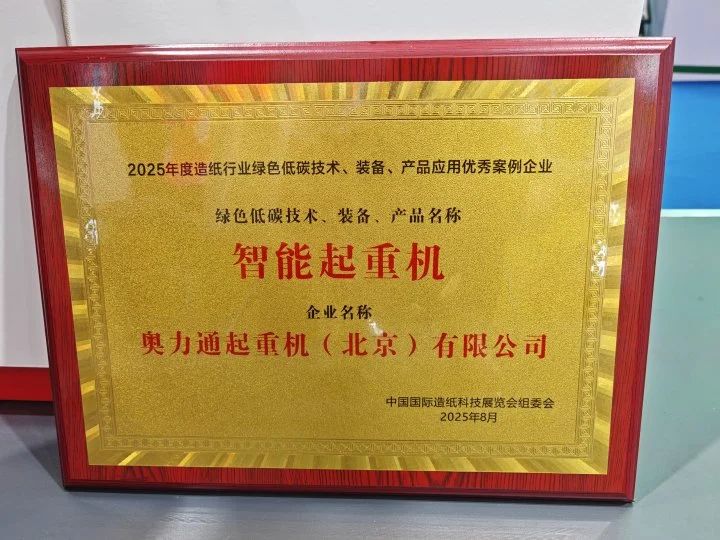 8月13日,在中国造纸协会及中国制浆造纸研究院主办的造纸产业绿色转型与融合发展大会上,玖鼎官网纸厂智能起重机凭借其在绿色低碳技术与智能装备领域的卓越表现,为玖鼎官网起重机赢得“2025年度造纸行业绿色低碳技术、装备、产品应用优秀企业”称号。